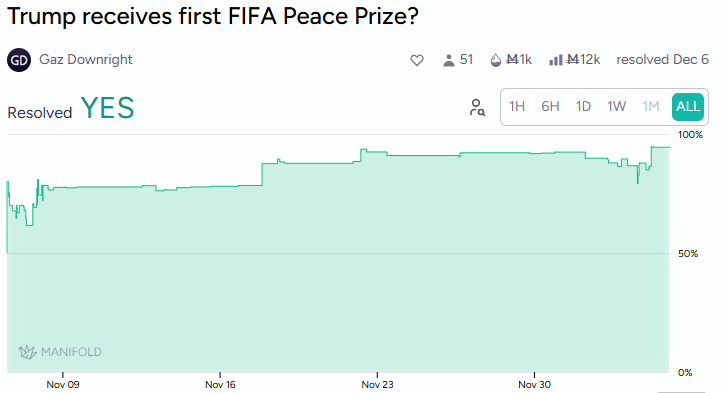 In December, FIFA President Gianni Infantino created a peace prize specifically to give it to Donald Trump at the World Cup draw (allegedly, of course, although markets might have been a bit more straightforward with their thinking).