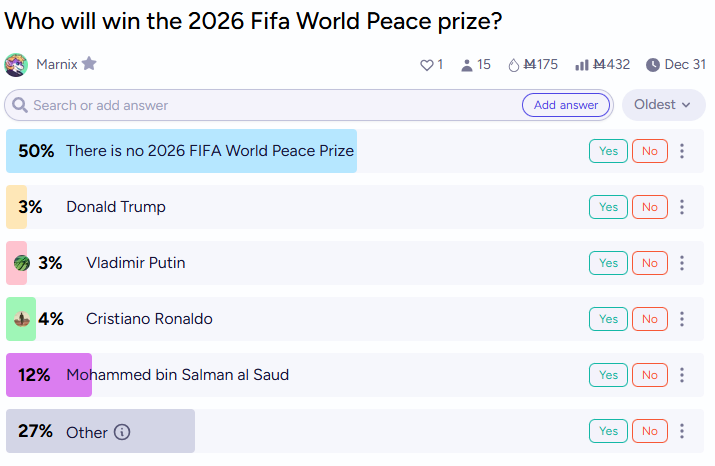 Interestingly enough (not really), traders agree that FIFA loved Trump so much that they will likely honour him by not handing the prize to a new winner this year. Although, hopefully, we will get to see Trump win it again (a possibility standing at 3%)!
