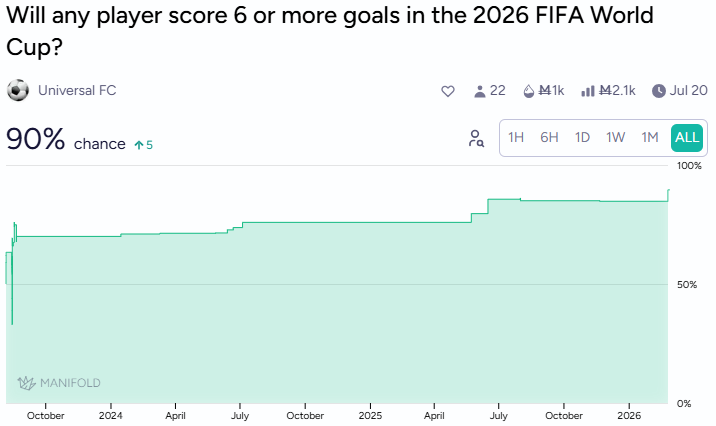 Mbappé’s 21% is largely contingent on France having a deep World Cup run.