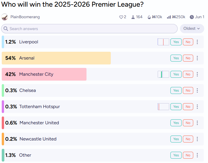 Five points with a game in hand. Fourteen fixtures remaining. Arsenal have been here before. Markets remember even if the table doesn’t show it yet.