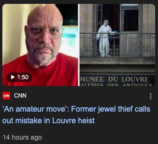 Perhaps due to all the Smithsonian Museums being shut down, some enterprising jewel thieves turned to the “Smithsonian of Paris,” the Louvre, for their latest heist. The French Crown Jewels were taken, and unfortunately may likely be disassembled, with the gold melted down and the jewels re-cut and sold individually abroad. This might be the worst thing to happen to the treasures of the Ancién Regime since the Holy Ampula was smashed in the Revolution.
