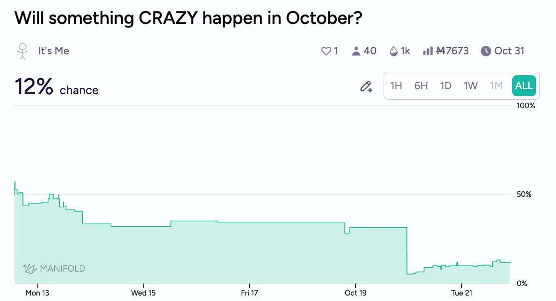I was impressed by the market on this one. I think it was too high near the end, but for most of the duration ~20% seemed rational; they correctly predicted that I would have high standards.