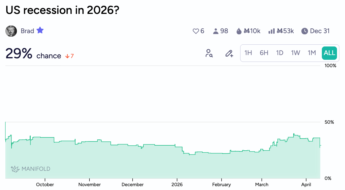 Notably, the odds for a general recession—potentially caused by, umm, overseas conflict—are much higher than a crash localized to the AI sector: