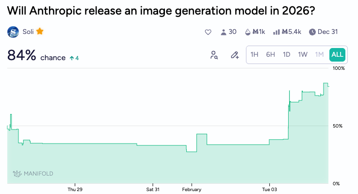 Traders also think that Anthropic is due to release an image model soon, perhaps in conjunction with these upcoming releases.