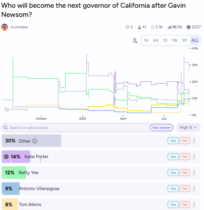 The popular consensus seems to be on neutrality, at least publicly. Any endorsement risks creating enemies among the losing candidates, and Newsom needs to maintain relationships across the California Democratic establishment for his presidential ambitions. But his behind-the-scenes preferences will inevitably leak, and markets will be watching for signals about which direction he's leaning.